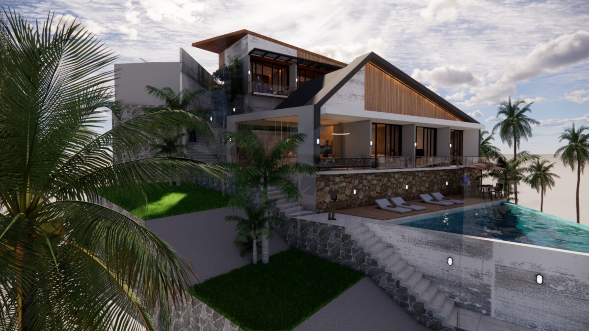 Villa kontemporer ini menghadap langsung ke Sirkuit Mandalika dan Pantai Kuta, menawarkan 8 kamar suite mewah dengan desain arsitektur modern tropis karya Andrameda Pranadja Group. Menggunakan material beton ekspos, kayu ulin, villa ini menampilkan infinity pool yang menyatu dengan pemandangan laut, serta struktur cantilever yang menciptakan kesan mengambang di ketinggian. Desainnya mengoptimalkan view management dengan tata letak terasering mengikuti kontur bukit.